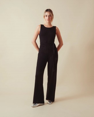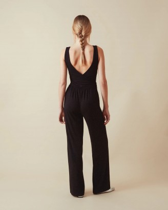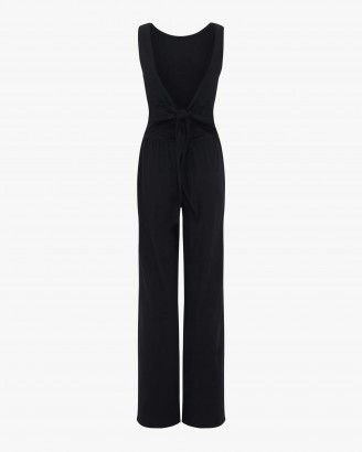 女士黑色背部交叉设计感休闲无袖裹身连体裤