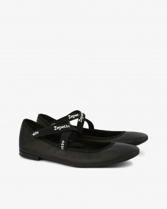 JOANA牛皮革橡胶底法式复古交叉带芭蕾舞鞋
