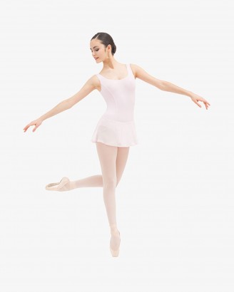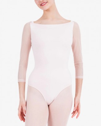 女士浅粉色短袖网纱拼接芭蕾舞连体服