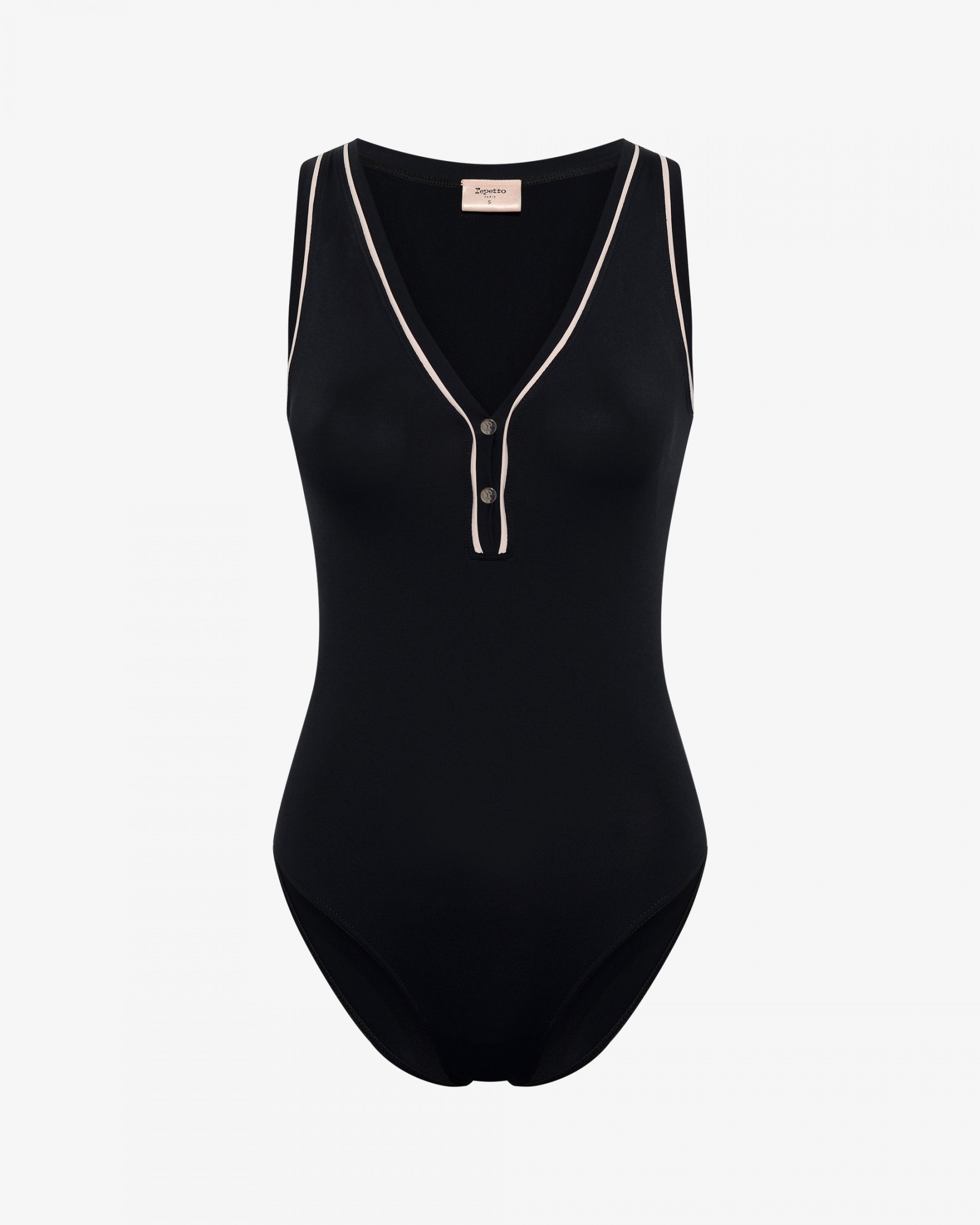 这款连体衣灵感源自芭蕾舞连体服,V领处点缀着按扣设计,优雅地贴合身形。