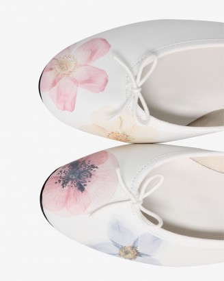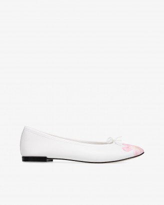 CENDRILLON白色花卉印花芭蕾平底鞋