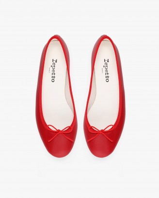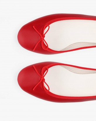 CENDRILLON皮底亮红色芭蕾平底鞋