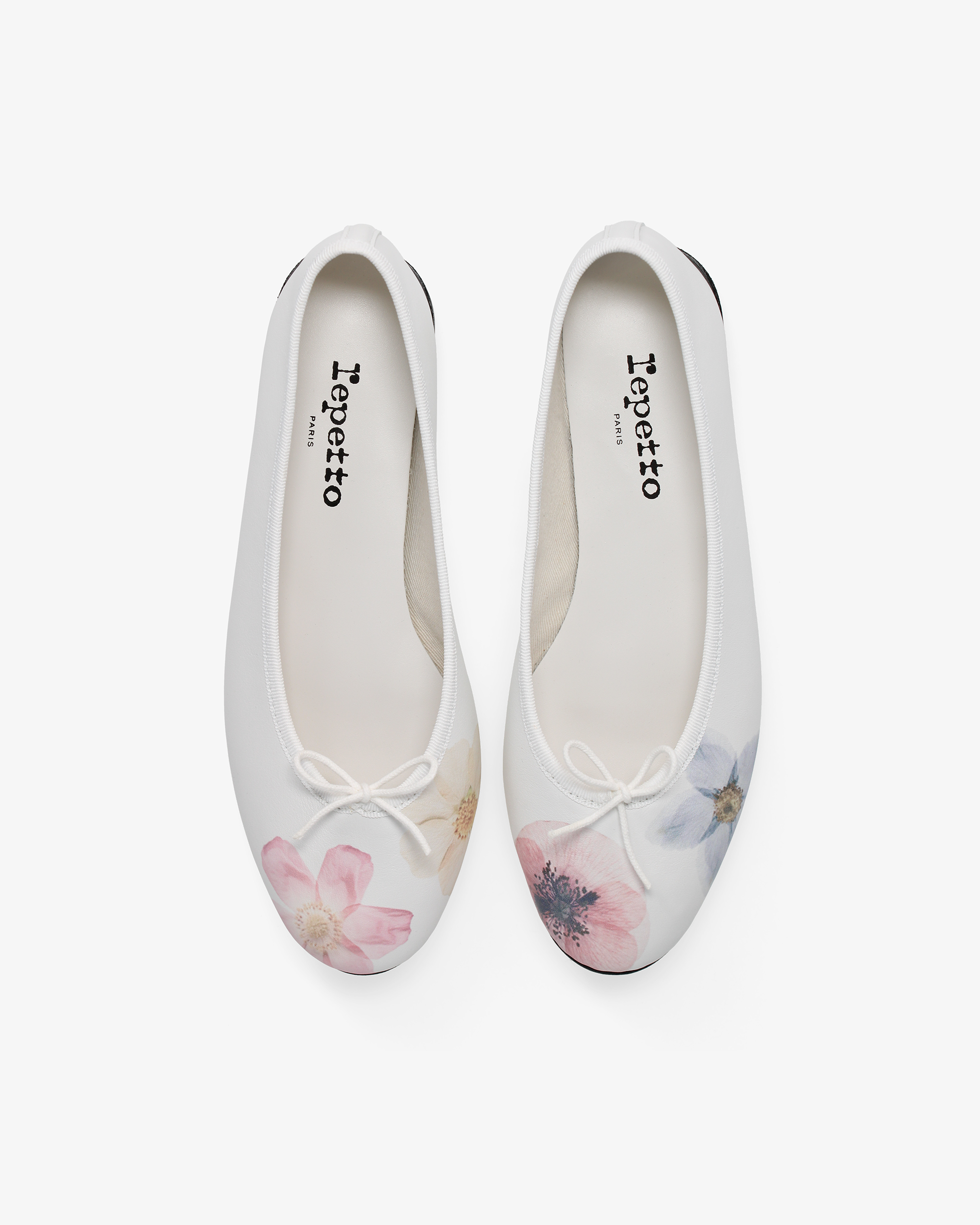 CENDRILLON白色花卉印花芭蕾平底鞋