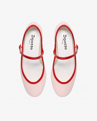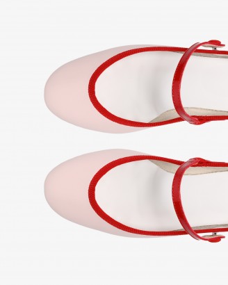 ROSE皮底淡粉色/亮红色低跟玛丽珍鞋