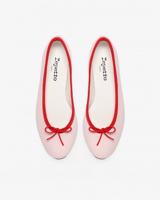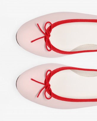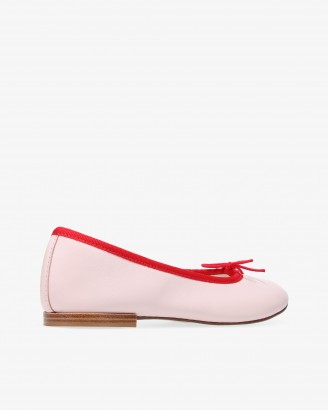 CENDRILLON皮底淡粉色/亮红色芭蕾平底鞋