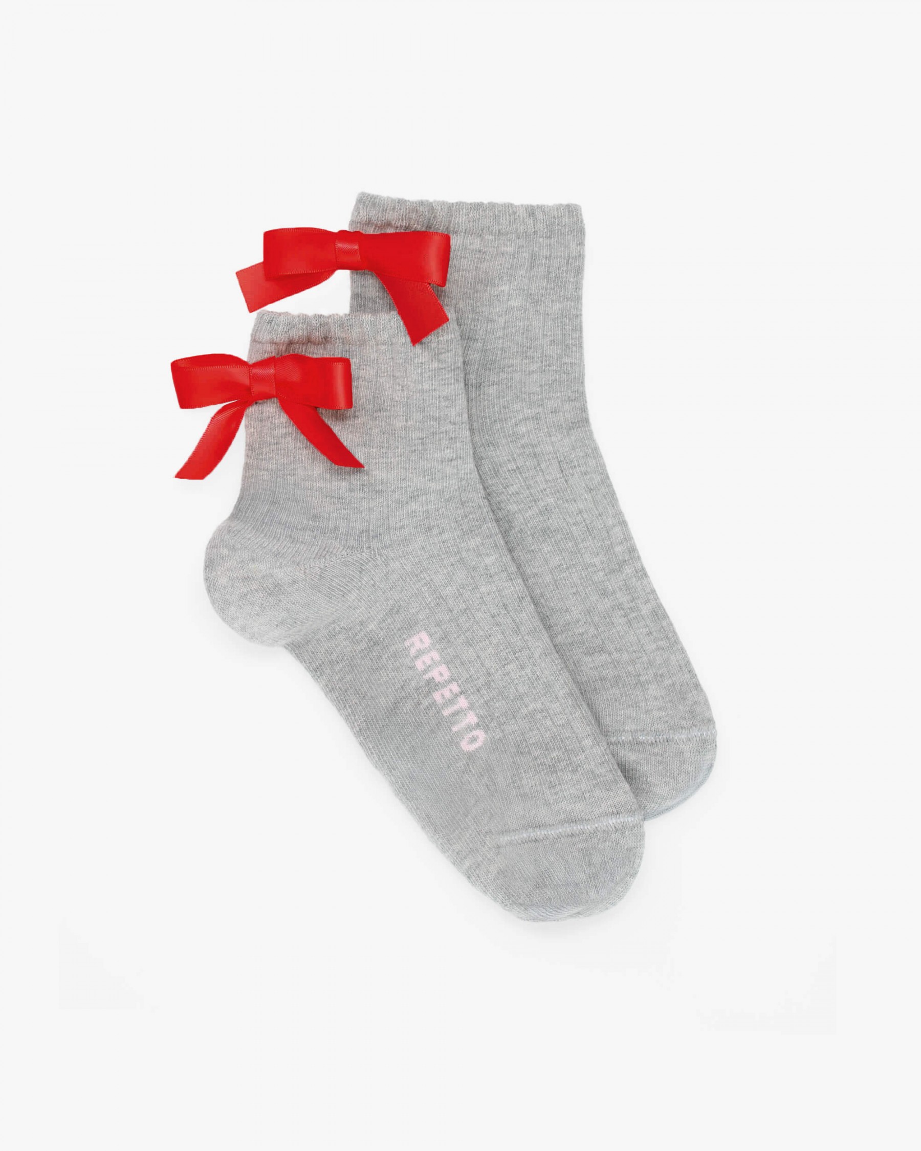 灰色/亮红色蝴蝶结短袜
